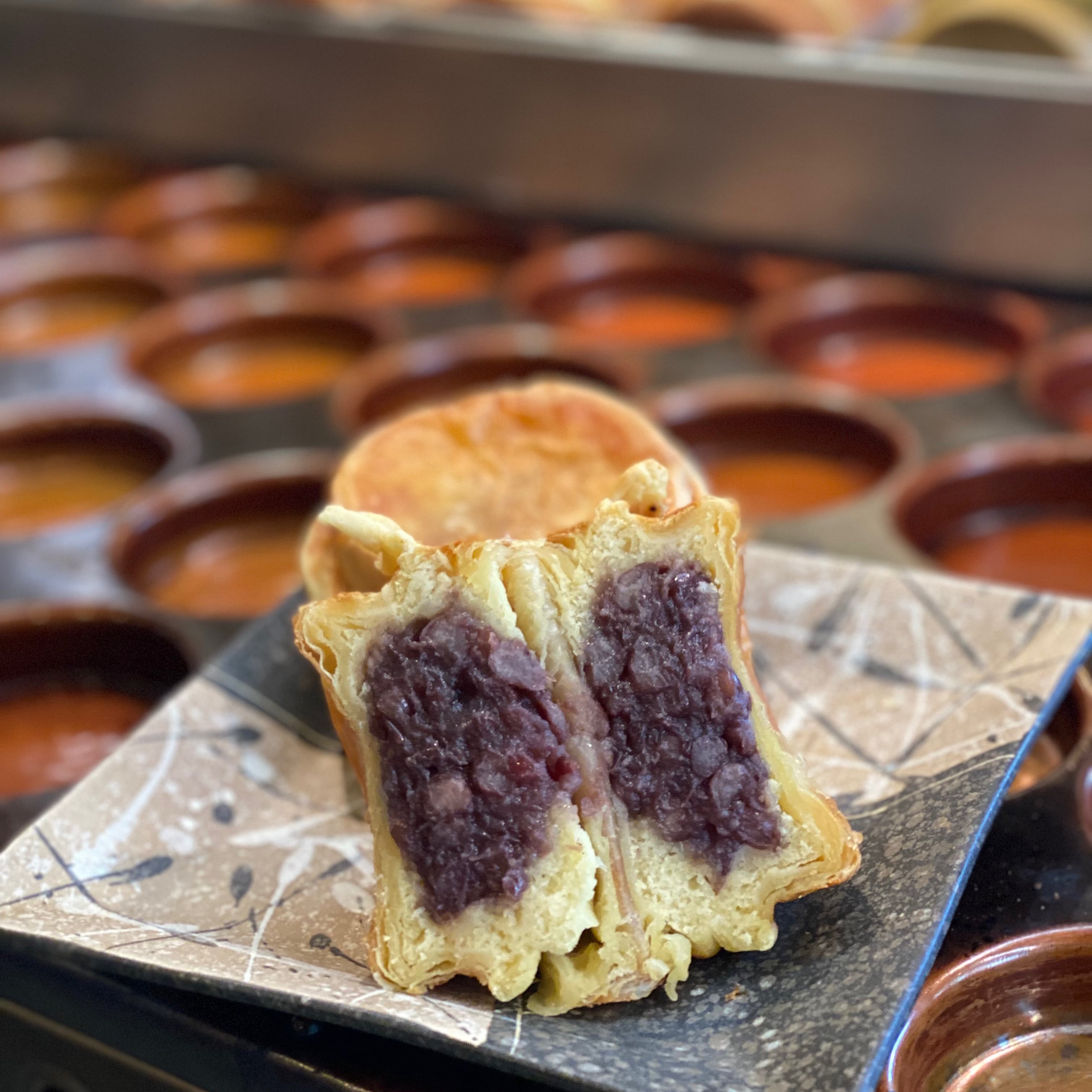 「クロワッサン大判焼き』」はTVでも紹介された当店の看板メニュー。バターの香りと餡子がよく合います♪